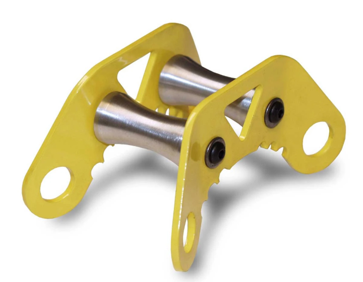 The Redesigned Conterra Edgebot is an ultra compact, high efficiency roller that is packed with features. It is uniquely shaped to work on railings, logs, rocks, guard rails, parapets, or anywhere else that friction needs to be addressed. It can be hobbled down with rope or webbing, hung by biners, or even slid along tracks made by 8mm utility cord. The Edgebot features stainless steel axles, bronze bearings, aircraft aluminium tires and powder coated side plates. Triangular openings allow biners to redirect off angle ropes. The underside is curved to work on varied surfaces, and sports crampons which help with guard rails and parapets. The Edgebot is the predecessor to the Clambot. links and cords not included Built in USA WARNINGThis product can expose you to chemicals including nickel acetate which is known to the State of California to cause cancer. For information go to: www.p65warnings.ca.govt