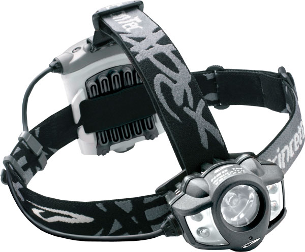 The 3-watt MaxBright LED will shine a 650 lumen spotlight beam up to 180 feet away and the four UltraBright LEDs will cast a steady wide beam or flashing light out as far as 75 feet. All this power in a 10-oz. package that squeezes 72 to 200 (average 150) hours of light out of four AA alkaline batteries (included). Waterproof to 1 Meter. The dual switch design allows easy access to the five modes. Submersible to 3-feet, works with alkaline, lithium or rechargeable batteries. Burn Time: 3-watt MaxBright LED High Mode - 72 hrsLow Mode - 96 hrsFour UltraBright LED's High Mode - 100 hrsLow Mode - 150 hrsFlashing Mode 200 hrs