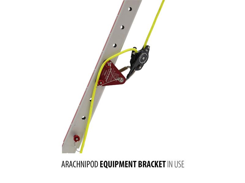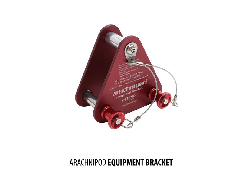 Arachnipod Equipment BracketThe equipment bracket is a handy accessory that allows the user to attach belay devices to the leg of the tripod. It can also be used to hang communication and airline pulleys. The equipment bracket must only be used when attached to the middle telescopic leg section.The safe working load of the Arachnipod tripod is reduced to 485 lbs. when a leg is used as an anchor. This attachment point is only to be used if the main line passes through a change of direction at the head of the tripod. Weight: 2.15 lbs. Arachnipod Equipment Bracket Instruction Sheet WARNINGThis product can expose you to chemicals including nickel acetate which is known to the State of California to cause cancer. For information go to: www.p65warnings.ca.govt