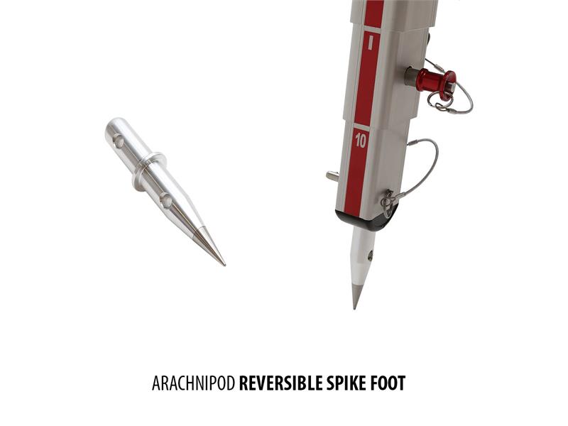 Arachnipod Spike Feet, Each The Arachnipod Spike Feet can be used for terrains such as cliff tops and rocky ground. Or, they can be used with the Soft Ground Shoes for use on sand or soft ground. The Spike Feet are easily attached to the tripod leg by simply removing the foot detent pin of the standard foot. This reveals an adaptor socket that accepts the Spike Feet. Weight: 8.8 oz. each  WARNINGThis product can expose you to chemicals that are known to the State of California to cause cancer. For information go to: www.p65warnings.ca.gov
