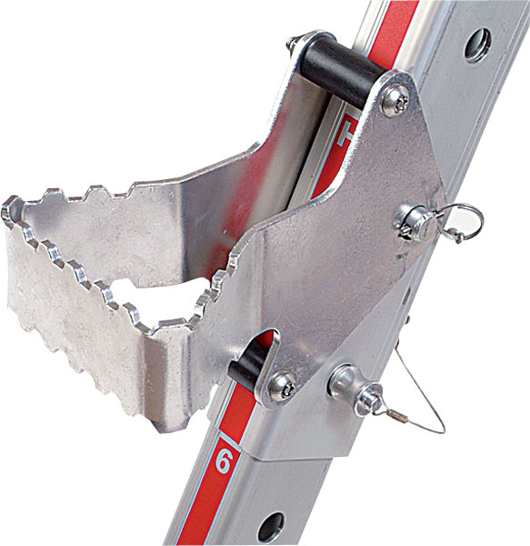 Arachnipod Step, EachThe Arachnipod steps are used to access the head when the legs are fully extended. This allows rescuers to attach additional hardware such as carabiners, pulleys, or guide ropes to the head. This prevents the need to lower the height of the system during use. The steps attach to any of the holes on the lower or middle leg with one pin. As with all Arachnipod pins, it is attached to the step with a stainless steel cable. The APOD Steps may be placed either on the inside or outside of the leg.