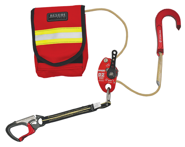 The D2/EGRESS-Hybrid Kit features a true "double Stop" - Hands free Stop and Panic stop. Handle rotation, rather than handle squeeze, controls descent. Includes EGRESS-Hybrid, D2, Escape Hook and custom deployment bag.